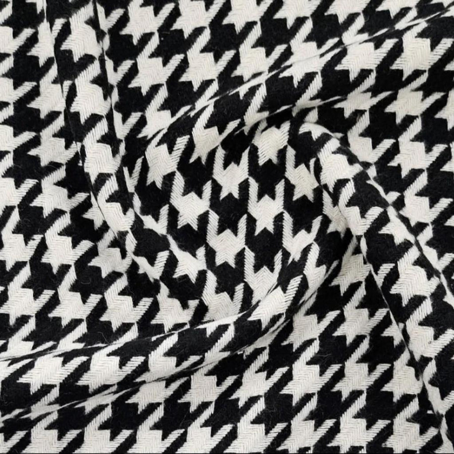 This Houndstooth Tweed Knit Fabric combines classic elegance with modern comfort, featuring a timeless houndstooth pattern in soft blue and ivory tones. The fabric's tweed-knit construction offers a warm, textured feel, making it an excellent choice for cozy yet stylish apparel and home decor projects Thick knitted fabric that heavyweight perfect for skirts , jackets and all clothing