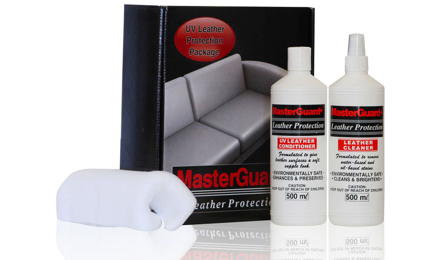 Our exclusive conditioner, contains protein to renew the rich natural lustre so attractive in leather furniture. Although Masterguard+ has a sunscreen, it is only designed to slow the effects of ultraviolet light on leather. Furniture should be placed in an area where it does not come in contact with direct sunlight. When used as directed, MasterGuard+ will protect leather from drying, cracking, peeling and premature fading caused by exposure to the sun.