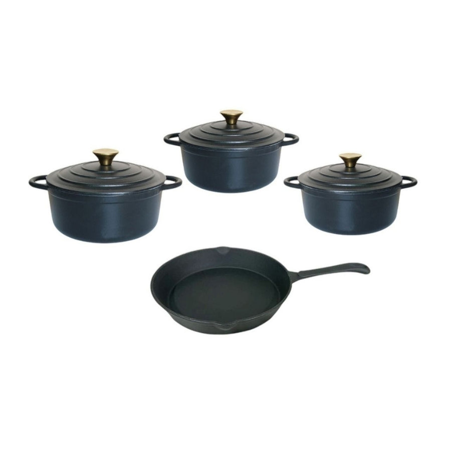 Cast Iron Pot Set - 7pc Continental Matt Black Gold Knobs