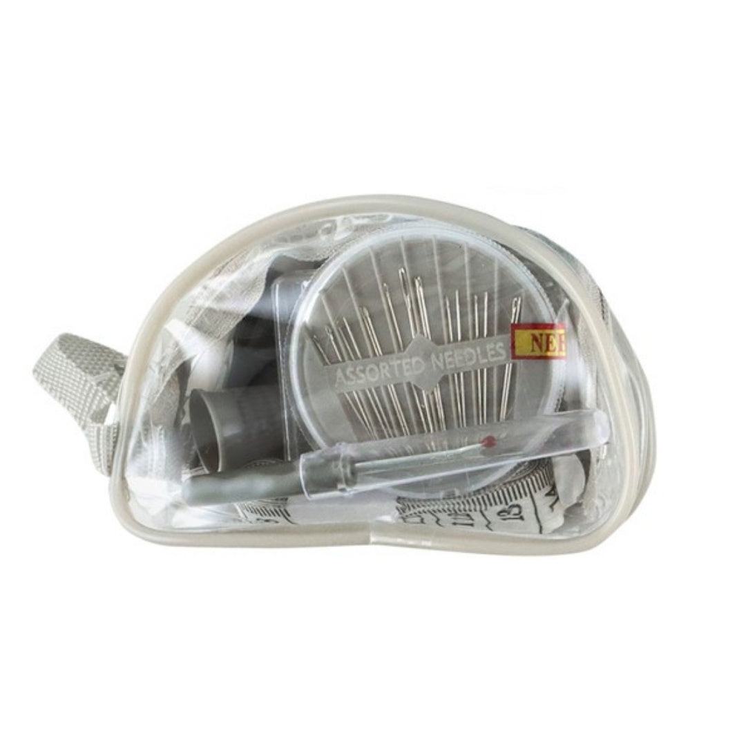 sewingPerfect for travel or quick fixes, this small sewing kit comes in a clear PVC bag. It includes scissors, tape measure, thimble, threader, seam ripper, needles, pins, buttons, fasteners, and colourful threads. Available in blue, grey, and pink. Easy to carry and great for everyday sewing needs.
