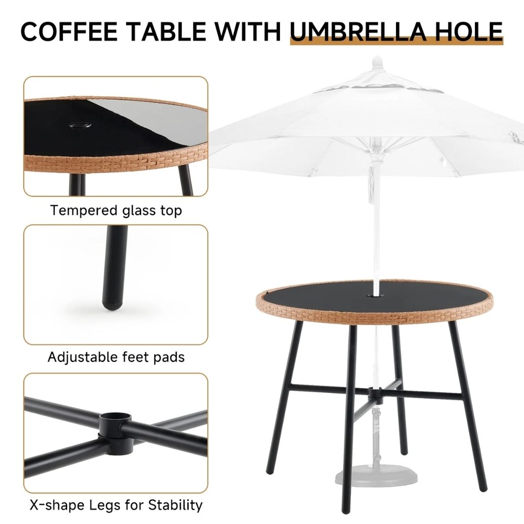 Built-In Umbrella Hole: Center table hole fits most standard patio umbrellas, providing shade for summer days( Umbrella not included)