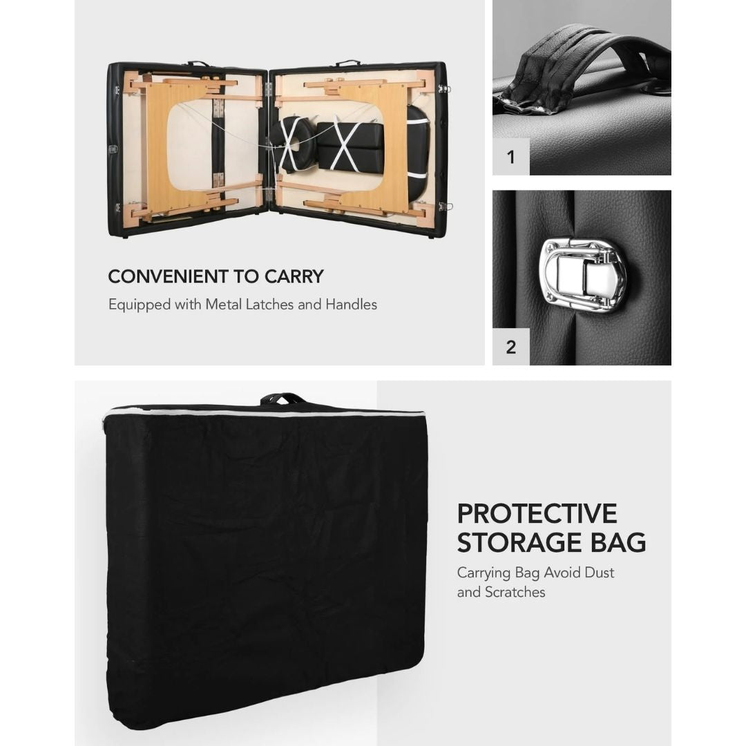 Strong Wooden Frame Construction Thick High-Density Foam Padding Adjustable Height System Removable Face Cradle & Arm Support Foldable Design with Carry Case Lightweight and Portable Ideal for Spa, Beauty, Physiotherapy & Massage Therapy