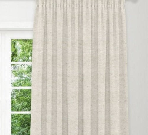 50% Polyester/50% Linen. Lined with cream polycotton lining