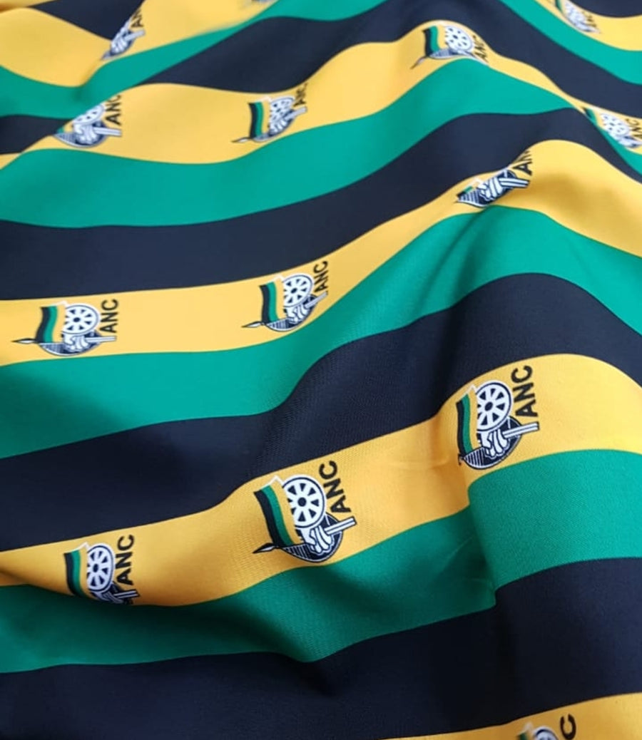 Printed scarf doek with ANC logo on 100% polyester base fabric minimat . overlocked on edges .